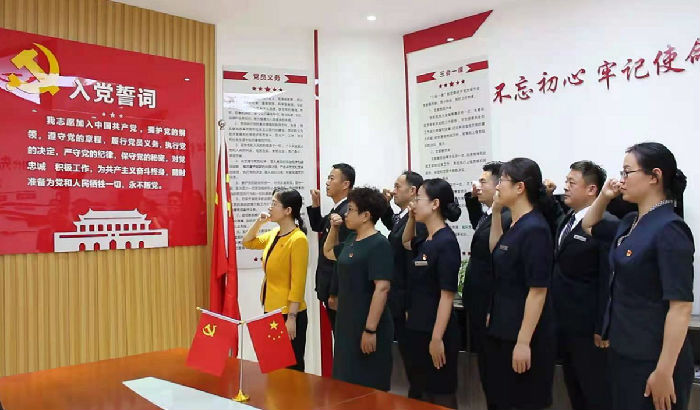 重温入党誓词 全体党员再次接受入党誓词的洗礼,,,,,,面对鲜红的党旗庄严宣誓:“我志愿加入中国共产党……随时准备为党和人民牺牲一切,,,,,,永不叛党”。。。。。铿锵恢宏的誓词,,,,,,强烈震撼着在场的每一位党员,,,,,,大家纷纷表示在今后的工作、学习、生活中一定以昂扬的士气、进取的心态和创先争优的精神践行入党誓词,,,,,,以实际行动恪守对党的承诺,,,,,,立足本职、争当先锋!